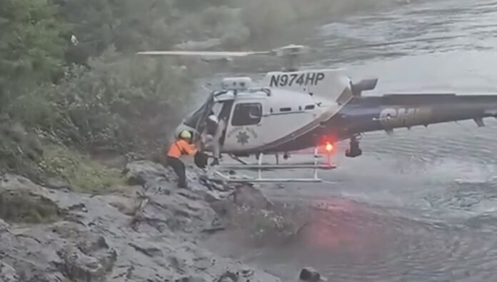The California Highway Patrol’s helicopter H-20 was called in to extract the child. The crew hovered low while a SAR team member handed the child to the helicopter crew. The child was transported to Diamond Arrow Landing Zone, where medical personnel checked him, provided snacks, and reunited him with his father.