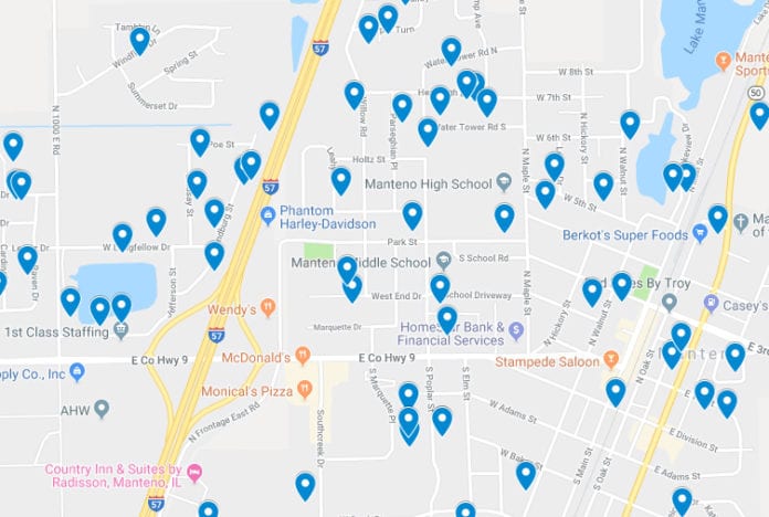 Digital and printable maps now available, courtesy of the Manteno Chamber of Commerce. Garage Sale Days start this Friday and Saturday, 8 am to 4 pm and Sunday Noon to 3 pm.