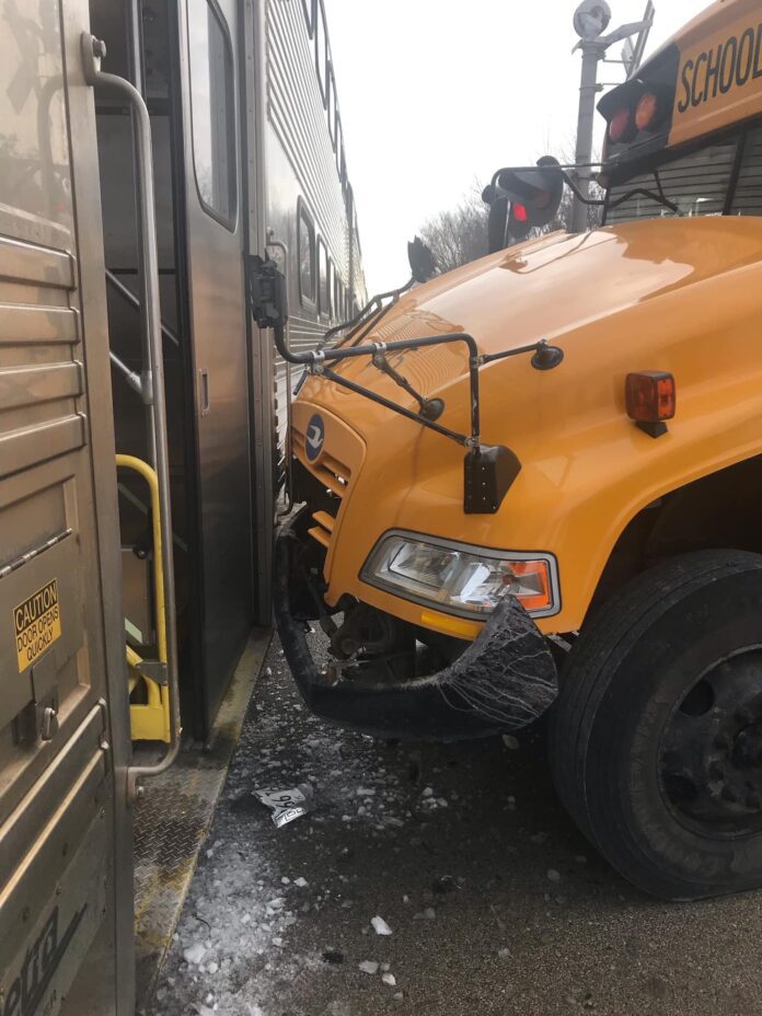 ORLAND PARK – No injuries were reported after a school bus collided with the train this afternoon.