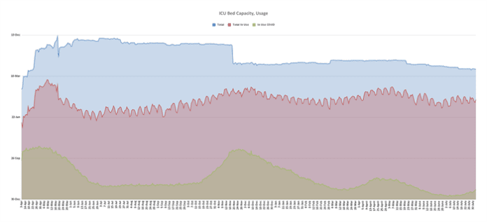 SPRINGFIELD – Hospitalizations for COVID-19 jumped by more than 13 percent from Sunday to Monday night while intensive care bed usage jumped 15 percent as the delta variant of the virus continued to cause a surge nationwide.
