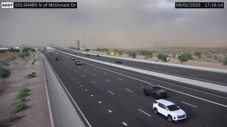 Blowing dust was first observed moving across Loop 101 in Scottsdale earlier in the afternoon, with east winds reported at 40 to 50 mph. The storm continues to expand across the region, making evening travel hazardous.
