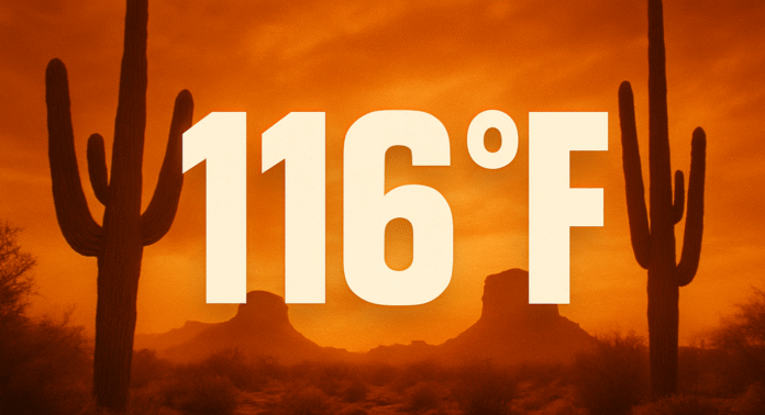 Phoenix, Arizona – Temperatures across the Phoenix metro area are expected to spike into dangerous territory beginning Sunday morning, with highs potentially reaching 116°F and triggering a multi-day Extreme Heat Watch through Tuesday night.