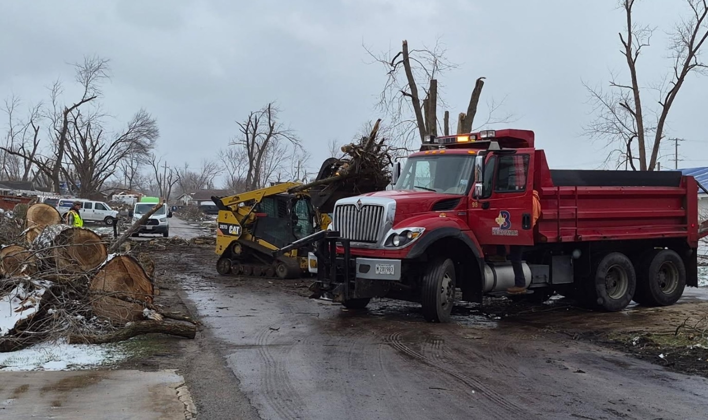 Bourbonnais, IL – Cleanup efforts are actively underway across Bourbonnais and surrounding Kankakee County communities following last week’s destructive tornado, with local crews and neighboring towns stepping in to help residents recover.