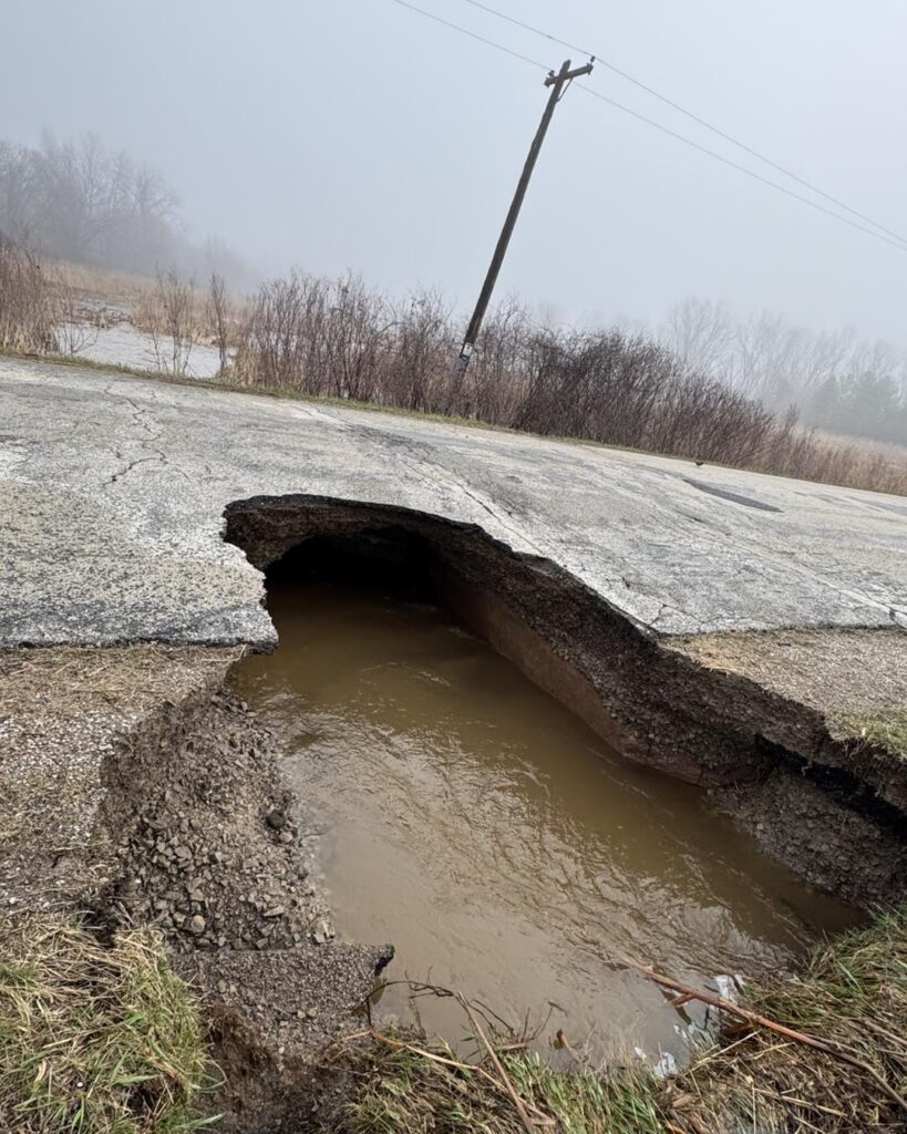 According to the Brown County Sheriff’s Office and Oneida Police Department, flooding washed out a section of the roadway within the past several hours, leaving a large gap where pavement once stood. Authorities have closed the road and are urging drivers to avoid the area entirely and use alternate routes.