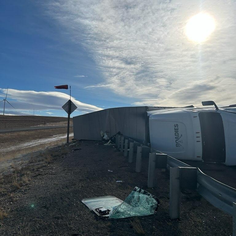 Cheyenne, WY – Drivers traveling across southern Wyoming today may continue to see traffic disruptions as strong winds have overturned multiple trucks along Interstate 80, prompting ongoing vehicle restrictions and cleanup efforts.