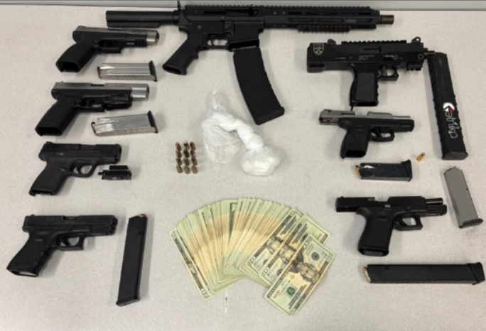 Police said the suspect, identified as 36-year-old Demarcus Jackson, allegedly possessed multiple firearms despite being a convicted felon. During the search, officers recovered eight guns, suspected cocaine, and more than $1,000 in cash.