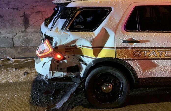JOLIET, IL – An Illinois State Police (ISP) trooper, who was struck by a vehicle on Interstate 80 westbound near LaGrange Road in Will County, has been released from the hospital following a three-vehicle crash on February 23, 2024, around 11:15 p.m.