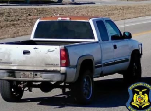 Investigators are searching for a white 2001 Chevrolet Silverado extended cab allegedly seen leaving the area. The vehicle bears Missouri license plate 9MGX36 and was last reported traveling southbound on US-160 from the Highlandville area.