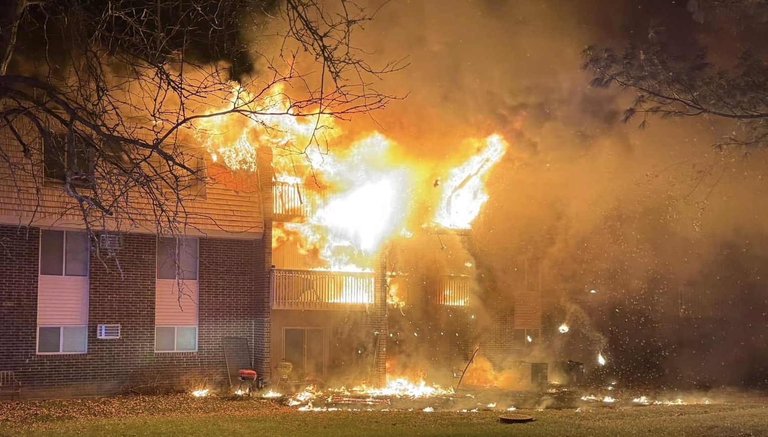 Crown Point, IN – A fire early Friday morning damaged a 36-unit apartment building on Cypress Point Drive, displacing several residents. Crown Point firefighters arrived at 3:24 a.m. to find heavy flames extending into the roof. Police quickly evacuated residents, and crews launched an aggressive attack to control the blaze.