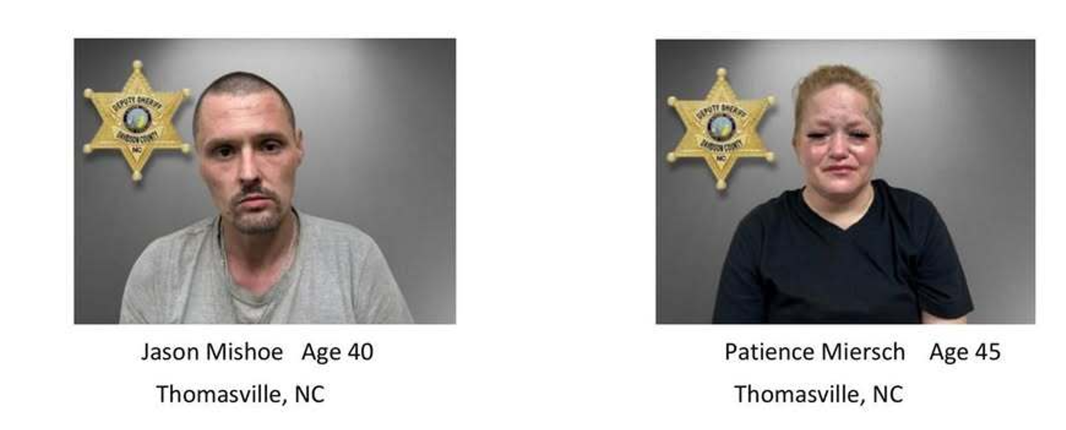 Davidson County, NC – A traffic stop in Thomasville led to two arrests after deputies allegedly found methamphetamine and a stolen firearm inside a vehicle, the Davidson County Sheriff’s Office announced Wednesday.