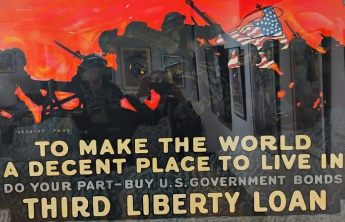 Aurora, IL – In honor of Veterans Day, the Pierce Art and History Center in downtown Aurora has opened a new exhibit titled “Poster Art of the World Wars.” The collection features 25 original World War I and World War II patriotic posters designed to inspire enlistment, boost morale, and promote war bond sales.