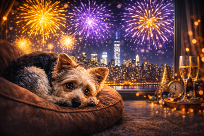 New York, NY – Fireworks are expected across the East Coast tonight as New Year’s Eve celebrations begin, prompting dog owners from Maine to Florida to take steps to reduce anxiety and prevent pets from escaping.