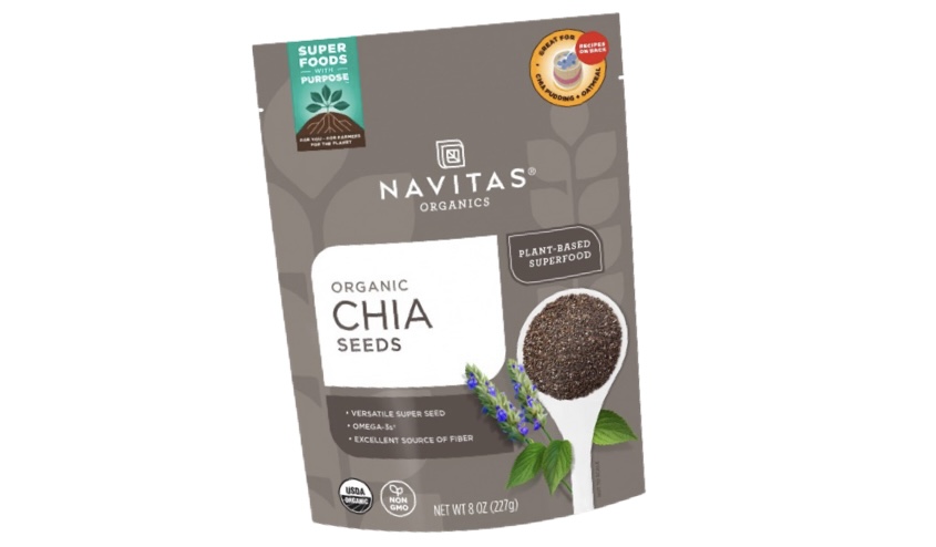The recalled product is Navitas Organics Organic Chia Seeds, 8 oz, sold in sealed stand-up pouches with UPC 858847000284. Only specific lot codes are affected. Consumers should check the back of the package above the nutrition label for nine-digit lot codes beginning with the letter “W.”