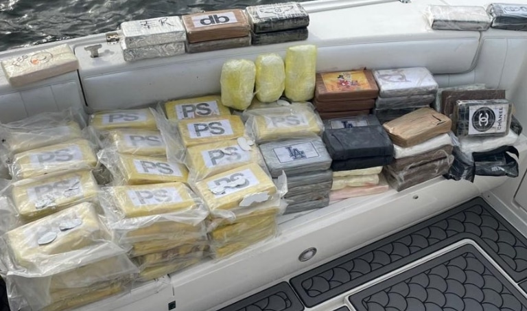 Palm Beach County, FL – A Sunday marine patrol off Boynton Inlet led to the seizure of over 120 kilograms of cocaine and dozens of bottles of codeine cough syrup, authorities said.