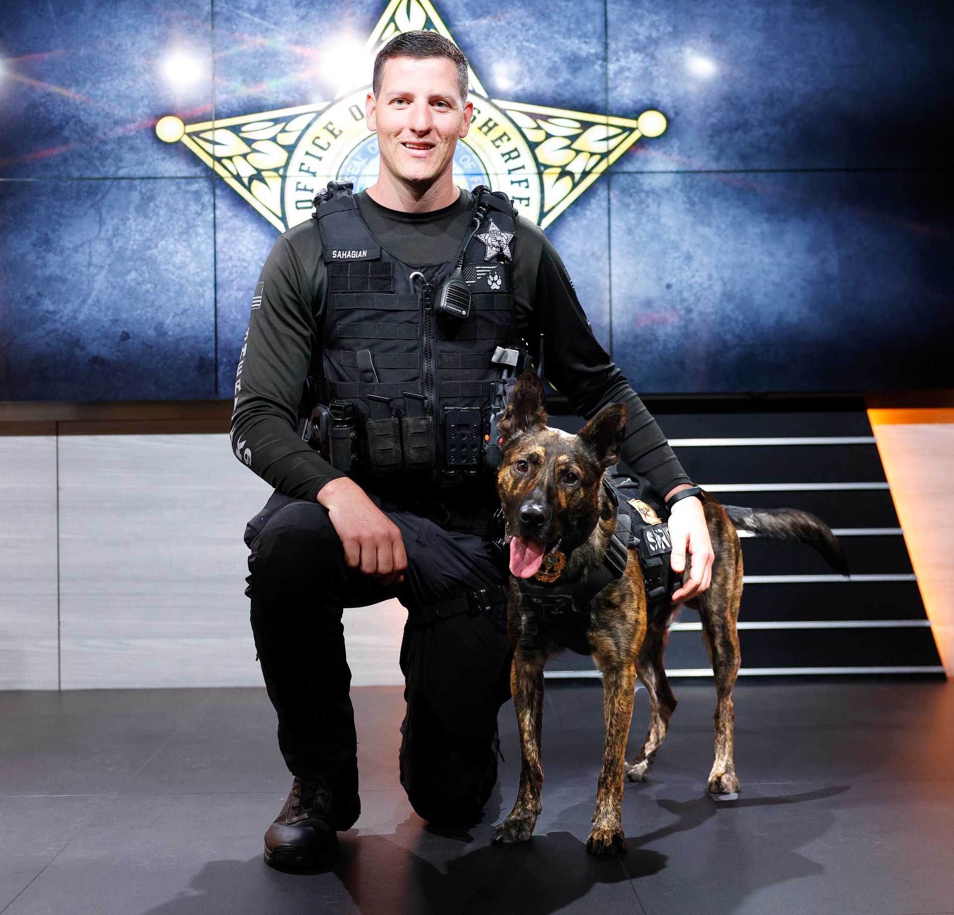 Sahagian joined the Sheriff’s Office in 2020 after completing the corrections academy, calling his initial posting at the Core facility “a great way to learn communication in tough situations.” He later participated in the agency’s Cell Dog Program, helping shelter dogs train for adoption under inmate supervision — an experience that fueled his interest in K-9 work.