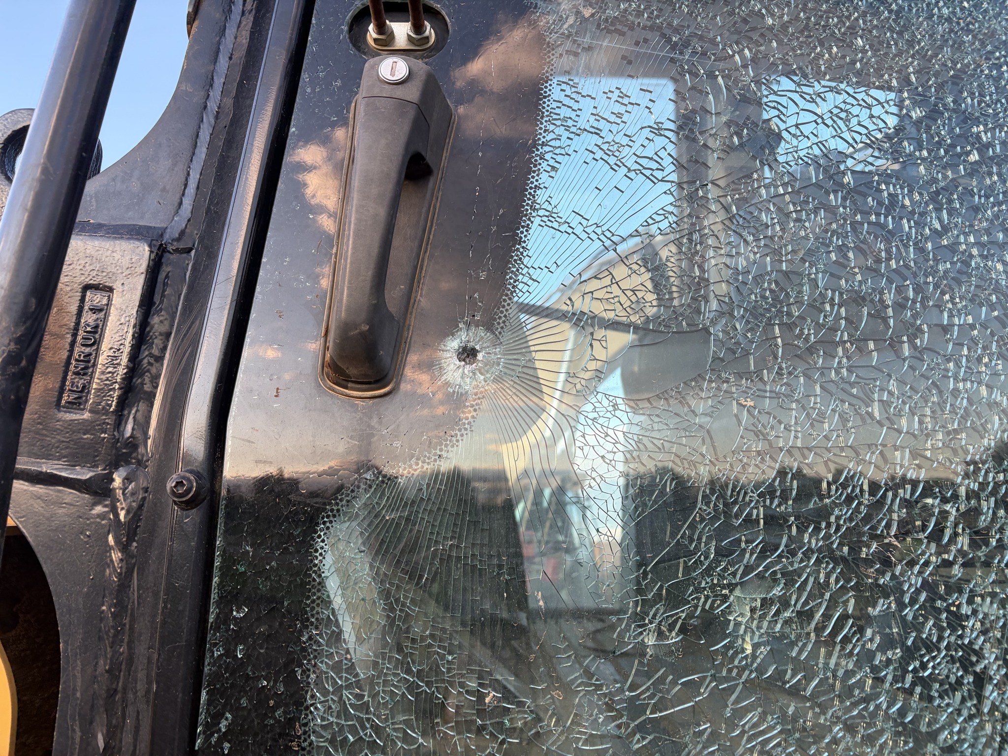 Police said the suspect or suspects allegedly fired three to five rounds at a bulldozer belonging to B.R. Kreider and Sons Inc., striking the vehicle and shattering windows. No injuries were reported.