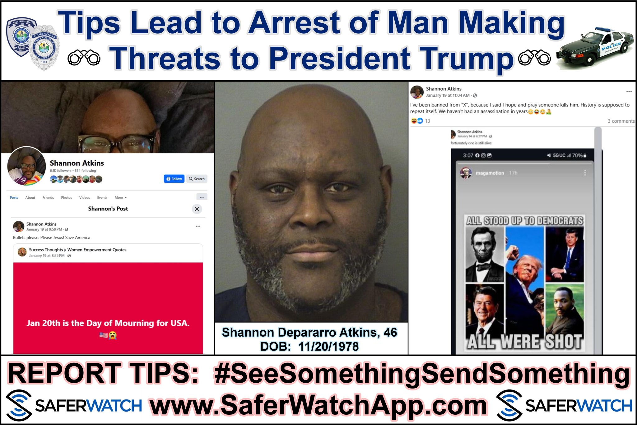 According to law enforcement records, the danger of this high-stakes environment is already manifesting in individual criminal cases, serving as a stark cautionary tale for the nation. In Florida, 46-year-old Shannon Depararro Atkins was arrested after allegedly responding to the administration’s “enemy” narrative by calling for the President’s assassination on Facebook. Atkins reportedly claimed that “America needs one good bullet to be saved,” a statement that triggered an immediate federal response. Authorities arrested Atkins on Friday following a tip to the FBI, charging him with a second-degree felony for written threats to kill or do bodily injury.
