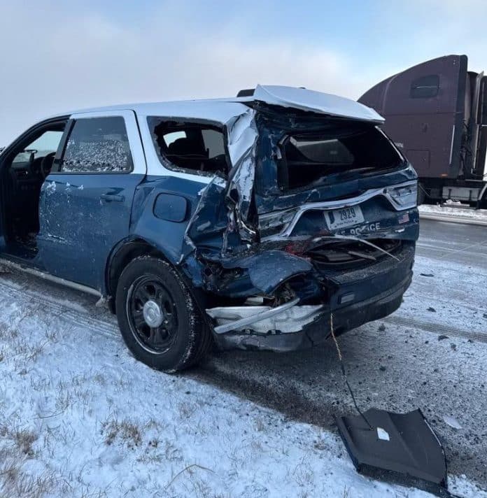 Police officials say the damaged cruiser highlights the dangers troopers and first responders face while working roadside incidents — particularly during winter driving conditions, when snow and ice can further reduce visibility and stopping distance.