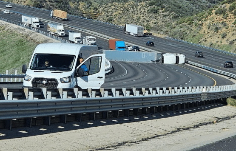 According to the California Highway Patrol’s Fort Tejon–Grapevine office, I-5 southbound lanes south of Vista Del Lago are completely closed due to an overturned semi tractor-trailer. The crash prompted officials to divert all southbound traffic onto State Route 138 as emergency crews work to clear the scene.