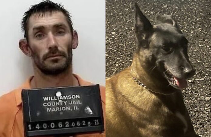 WILLIAMSON COUNTY, Illinois – An intense five-hour manhunt came to a dramatic conclusion on Monday when a Williamson County Sheriff’s Department K9 officer cornered Eric F. Gibbs, an armed fugitive.