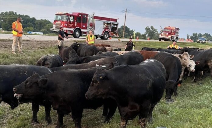 As word spread like wildfire through the city, residents quickly learned that around 25-30 cows were freely roaming the roadways. The Illinois State Police swiftly initiated an investigation into the crash, while the Bloomington Police Department, McLean County Sheriff’s Office, and Bloomington Township Fire Protection District joined forces to manage traffic and cattle control.