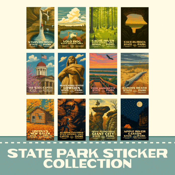 Springfield, IL – Illinois is marking a century of conservation with a striking new collection of vintage-inspired posters and sticker packs, honoring some of the state’s most beloved parks and historic sites.