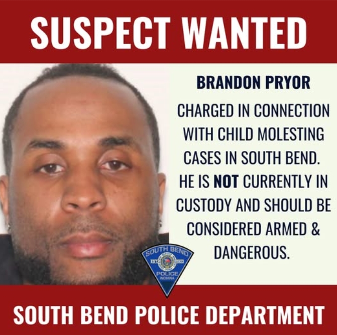 According to the South Bend Police Department, 37-year-old Brandon Pryor was originally charged earlier this year in connection with a May 2024 case involving a juvenile. On Wednesday, the St. Joseph County Prosecutor’s Office filed three additional counts against Pryor tied to a separate incident in October 2024.