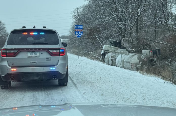 Jasper County, IN – Drivers on I-65 in northwest Indiana should expect delays today after a tanker hauling flammable material rolled over near the DeMotte exit.