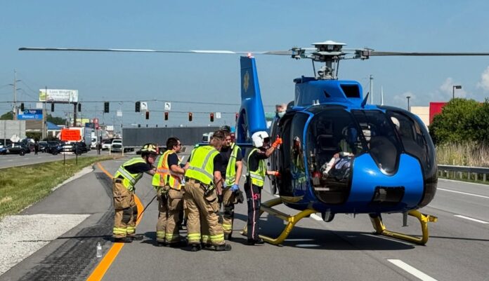 Hobart, IN – A rollover crash on U.S. Route 30 just east of I-65 in front of Westfield Southlake Mall prompted a major emergency response this afternoon, leaving two people injured and temporarily shutting down part of the roadway.