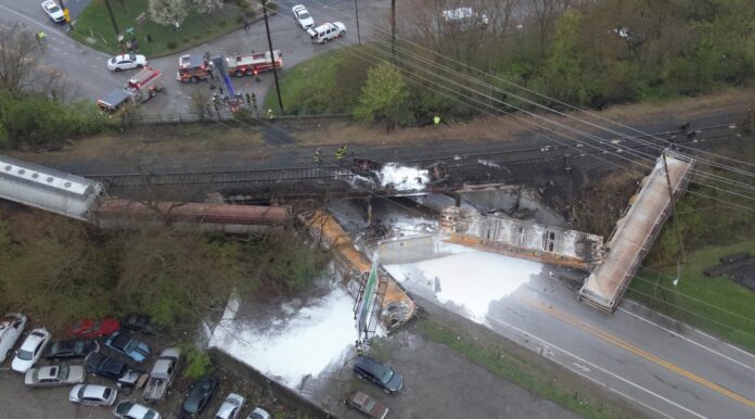 Indianapolis, IN – A CSX train derailed Sunday evening at Southeastern Avenue and Earhart Street in Indianapolis, leaving six rail cars scattered across the roadway. According to the Indianapolis Fire Department (IFD), two of the cars were empty, while four contained cornstarch, which spilled onto the ground following the derailment. The initial response was triggered by a report of a possible train fire, which was later confirmed to be a chemical spill. However, authorities clarified that no fire or hazardous materials were involved.