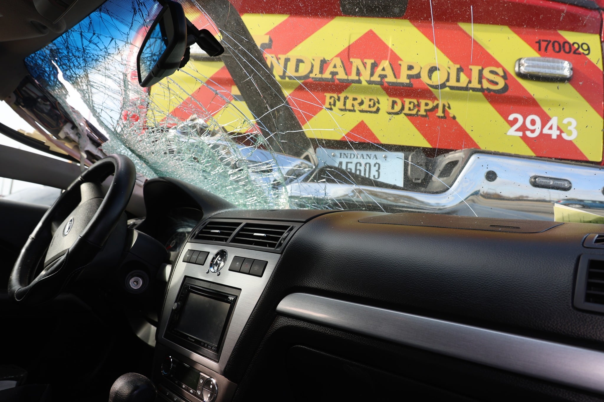 According to the Indianapolis Fire Department, the crash happened at 1:16 p.m. at the intersection of 38th Street and Georgetown Road as two IFD vehicles were heading east toward a working fire on Voight Drive. The lead emergency vehicle (EDO) was making a left turn with lights and sirens activated when the woman, driving a Toyota Camry, allegedly sped through stopped traffic and collided with the EDO’s passenger side rear panel.