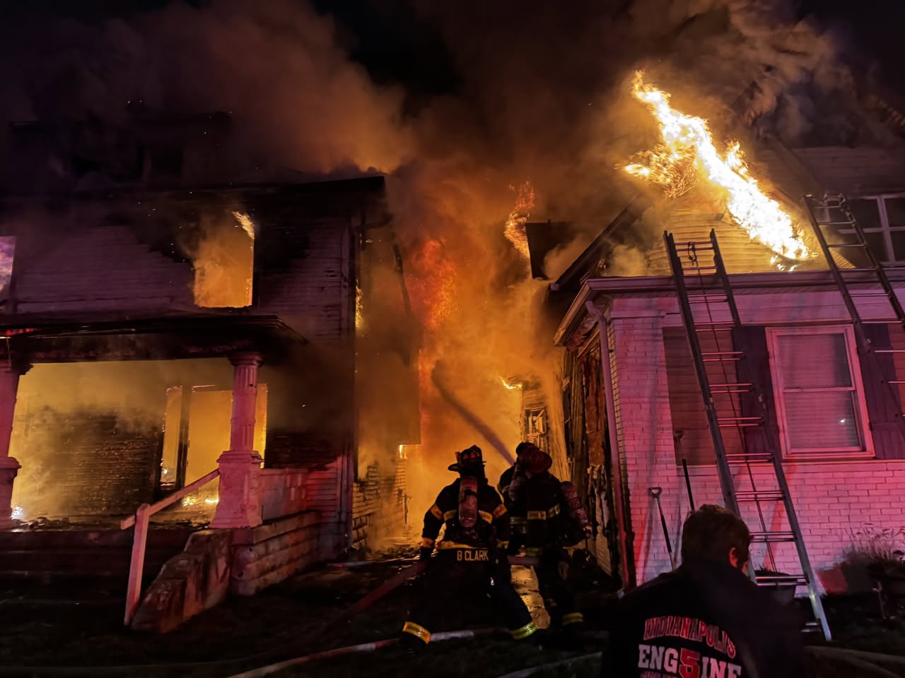 Indianapolis, IN – An early morning fire displaced several families Tuesday after flames tore through multiple homes on North Delaware Street, according to the Indianapolis Fire Department (IFD). The blaze began around 5:41 AM inside a two-and-a-half-story unoccupied structure at 2956 N. Delaware St., spreading quickly to neighboring residences before firefighters brought it under control.
