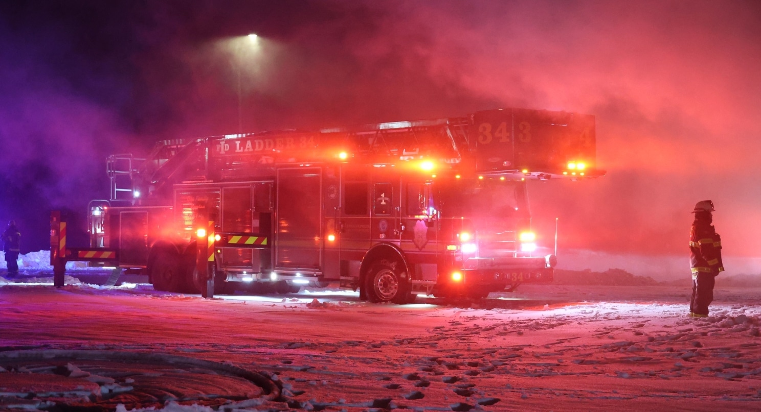 A partial roof collapse occurred shortly after the defensive posture was established. Firefighters continued working from the exterior, battling the blaze amid brutal cold temperatures and snow-covered ground.