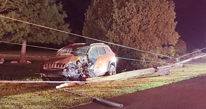 Rensselaer, IN – A driver is missing after a vehicle slammed into a power pole early Saturday morning west of Rensselaer, according to the Rensselaer Volunteer Fire Department.