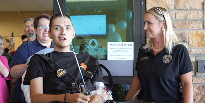 Jefferson County, CO – Eighteen-year-old Matthew Silverstone, one of the victims of the Evergreen High School shooting, was released from CommonSpirit St. Anthony Hospital earlier today. About 140 first responders and hospital staff gathered outside the emergency entrance, holding blue balloons—Matthew’s favorite color—to celebrate his release.