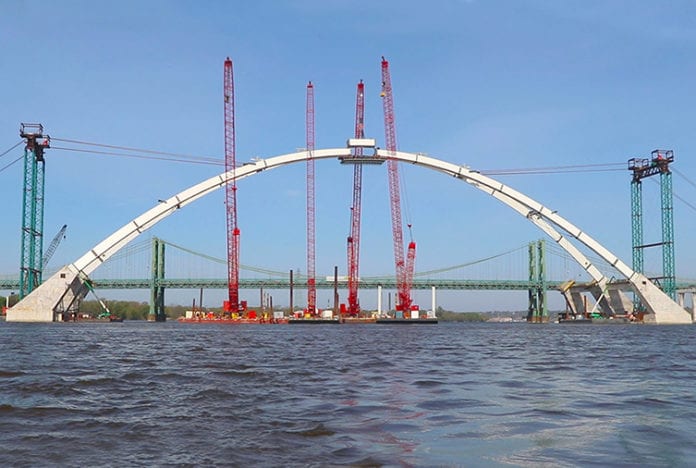 A keystone to close the Arch on the new I-74 Interstate Bridge connecting Bettendorf, Iowa to Moline Illinois was set in place today.