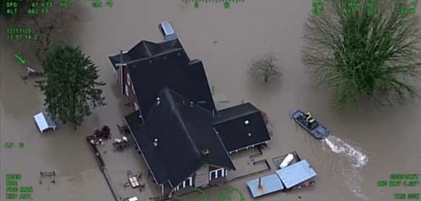 Duvall, WA – A coordinated rescue unfolded in Duvall today as rising floodwaters surrounded a residential property, prompting a response from the King County Sheriff’s Office Air Support and Marine units.
