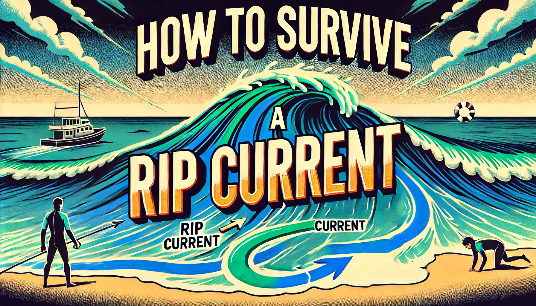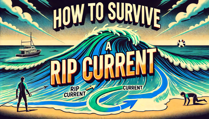 When caught in a rip current, remain calm and avoid swimming directly back to shore. Instead, swim parallel to the shoreline to escape the narrow current. Once out of the current, swim at an angle back to the beach.