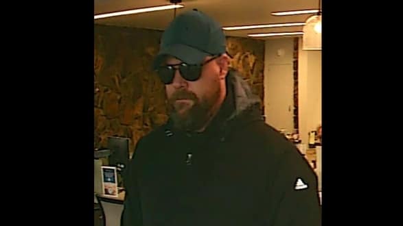 Deputies described the suspect as a white male adult, about 6 feet tall, weighing around 175 pounds with a medium build and a full beard. At the time of the robberies, he was last seen wearing a green ball cap, aviator sunglasses, a black jacket, black sweatpants, gray gloves and black shoes with white soles.