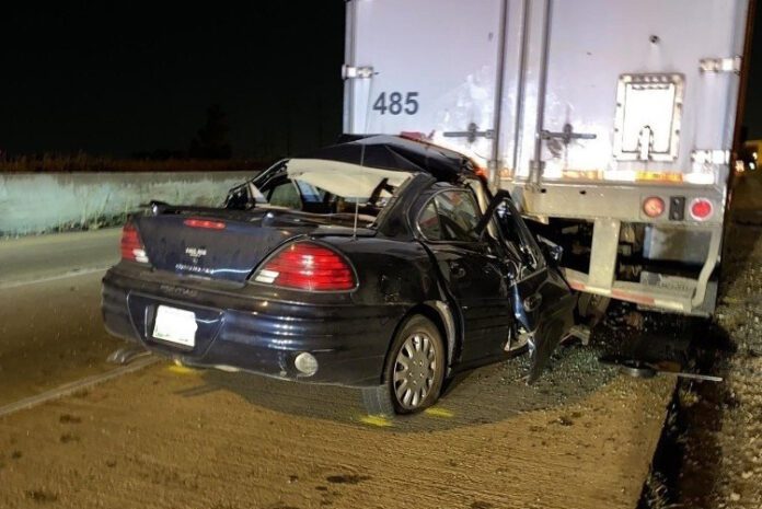 According to Indiana State Police, it happened at 1 am this morning when for an unknown reason, the 2001 Pontiac Grand Am 25-year-old Stephanie K. Sanders was driving left the roadway and struck the rear of the tractor-trailer.