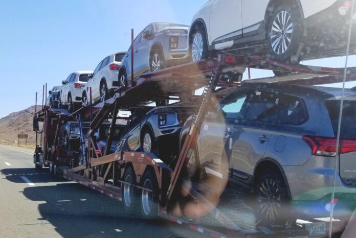 The truck tractor car hauler was able to pull over onto the right shoulder before the fire spread throughout the rest of the transport.