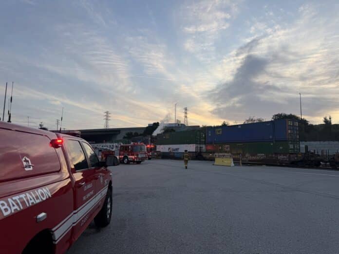 Los Angeles, CA – A freight train fire early today in Los Angeles prompted a rapid emergency response after flames were discovered inside a shipping container, drawing attention to rail safety across Los Angeles County.