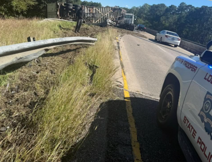 St. Tammany Parish, LA – Louisiana State Police are managing a major traffic incident after an overturned truck and trailer blocked the eastbound lanes of Interstate 12 near the I-10 overpass in St. Tammany Parish on Wednesday, October 29.