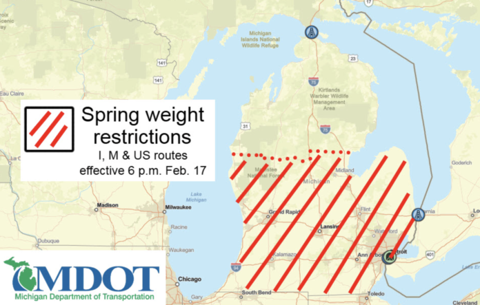 Lansing, MI – Commercial drivers across Michigan will face new weight limits beginning Tuesday evening as seasonal road protections take effect statewide.