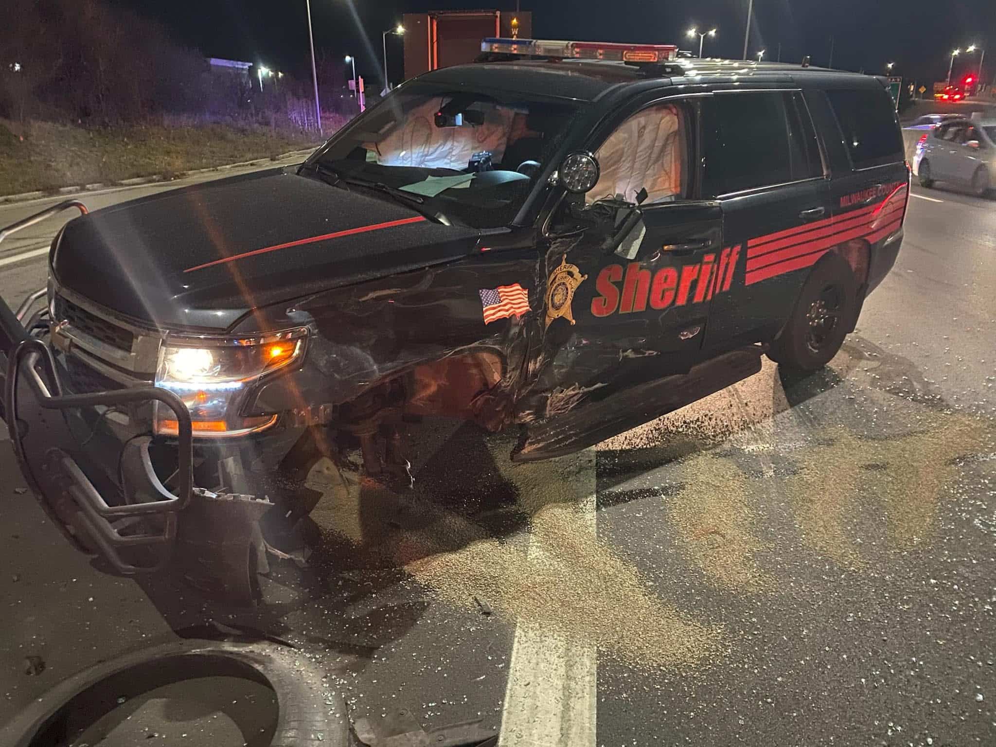 Milwaukee, WI – A Milwaukee County Sheriff’s deputy narrowly avoided injury after his squad car was struck twice on I-43 late Monday. Both incidents involved alleged impaired driving, officials said.
