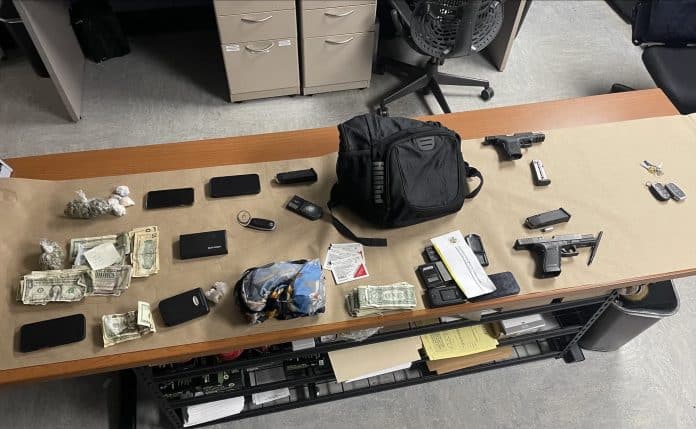 Milwaukee, WI – A traffic stop by Milwaukee police led to the arrest of two people and the seizure of drugs, firearms, and a stolen vehicle.