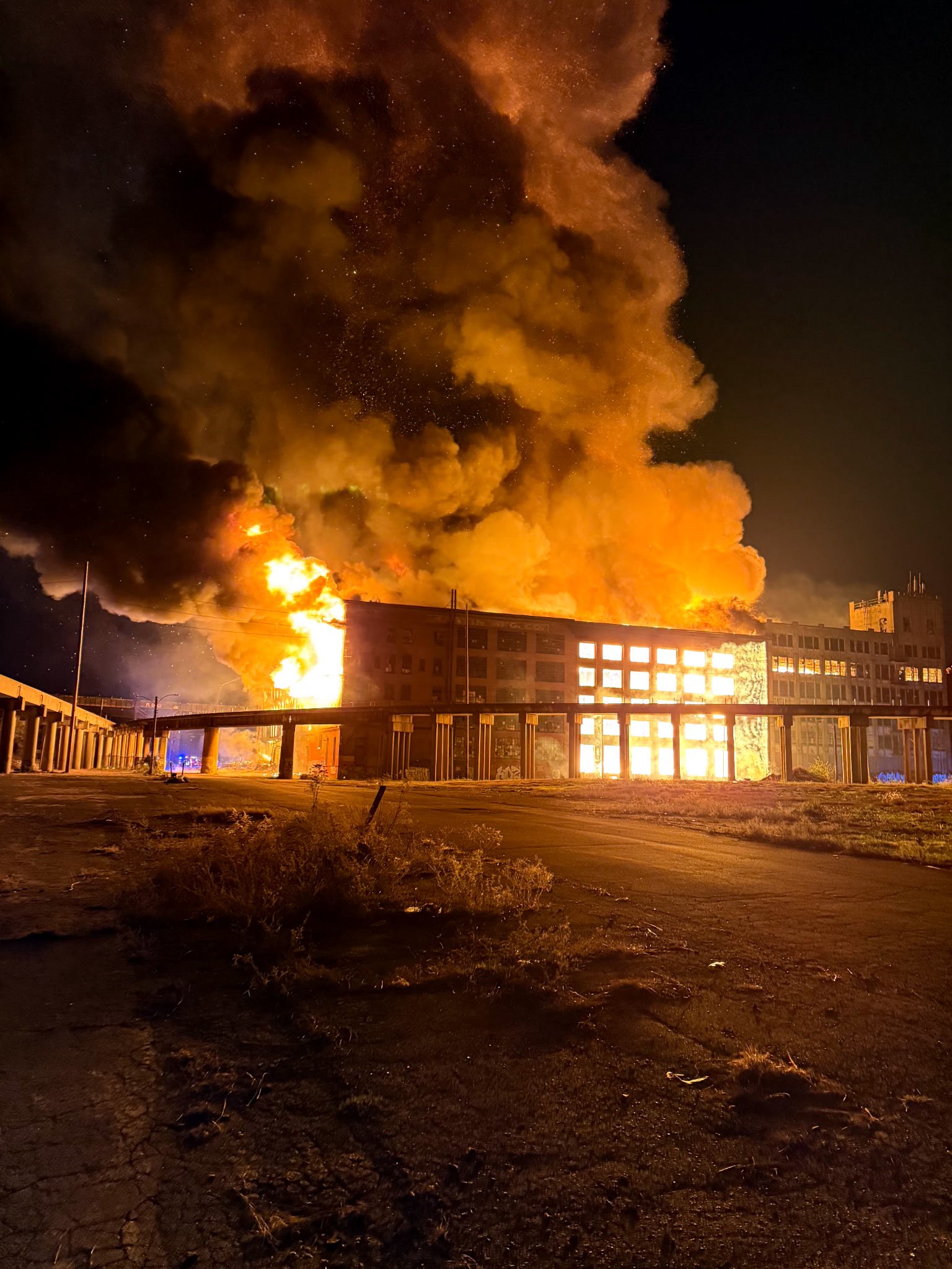 Firefighters have remained on site through the weekend, continuing to extinguish hotspots across the expansive, abandoned property. The exact cause of the fire remains under investigation.