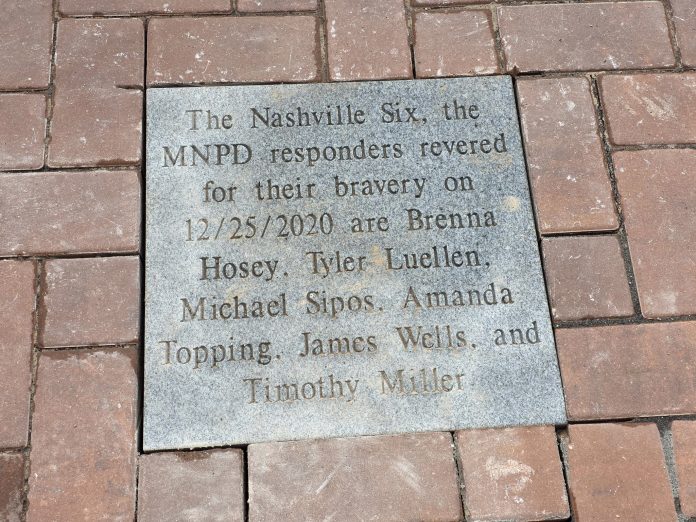 City officials joined first responders at the reopening ceremony, including Sergeant James Wells, one of the six Nashville police officers credited with saving lives that morning by evacuating residents and visitors after hearing a recorded warning message coming from the RV.