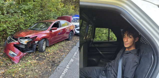 Authorities have not yet released the suspect’s name or what prompted the chase. The vehicle appeared to have sustained significant front-end damage, and no injuries were immediately reported.