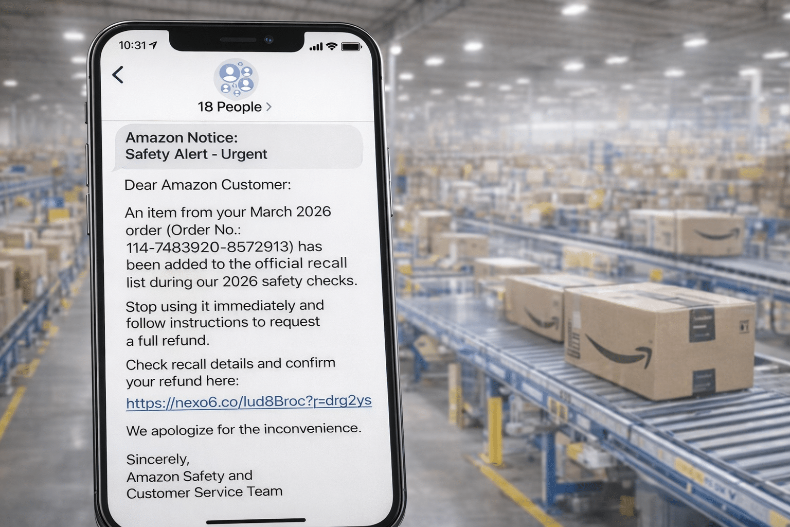 The scam texts claim a recent order has been placed on a recall list and instruct users to stop using the item immediately. Recipients are then urged to click a link to request a refund. Officials warn the link is fraudulent and leads to websites designed to capture sensitive data.